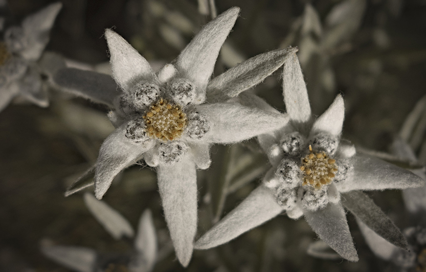 Leontopodium alpinum, Stella Alpina. Leontopodium significa letteralmente “piede leonino”, ed è un adattamento latino del greco “leontopódion” (λεοντοπόδιον) da “léon” (= leone) e “pódion” (= piede)