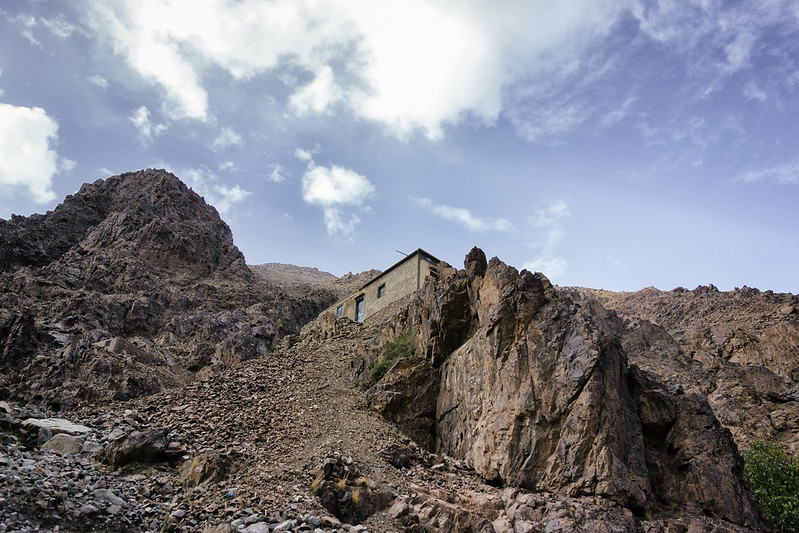 In lontananza si intravede il rifugio Toubkal, rifugio custodito dove è necessaria la prenotazione.
