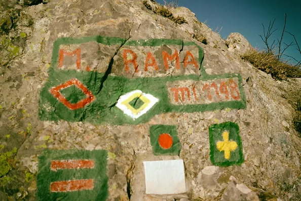 Si prosegue sul sentiero principale tra spuntoni rocciosi, per raggiungere in breve la sommità del Monte Rama.