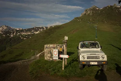 Dal Rifugio si prosegue la sterrata fino al Colletto Balma (1886 m). Sull’ampia sella la strada si biforca: proseguire centralmente salendo sul prato che s’innalza abbastanza ripido sui costoni prativi delle Rocche Giardina.