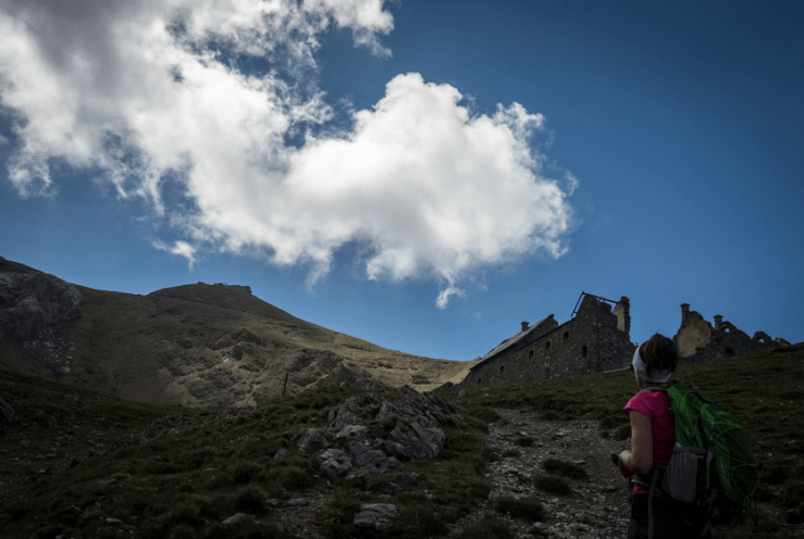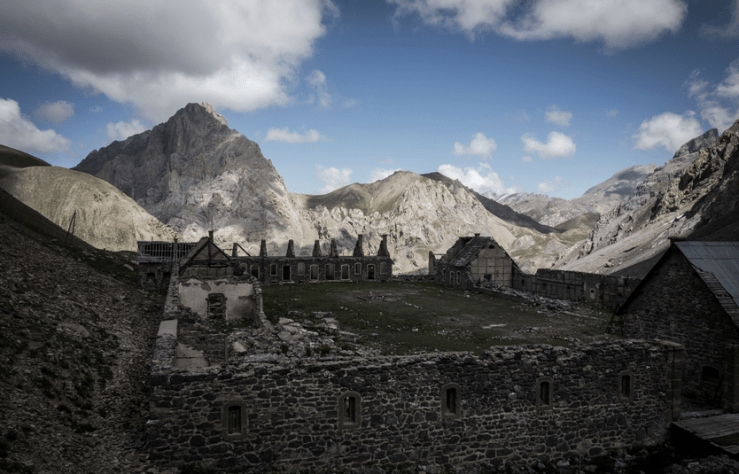 Più avanti abbandoniamo il sentiero che porta alla capanna e al Col du Vallonet per svoltare a destra versoio Baraquement de Viraysse (2503 m), grande costruzione militare a pianta quadrata.
