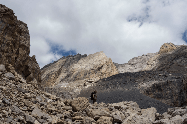 Tenendosi leggermente a sinistra si risale un ampio conoide detritico.