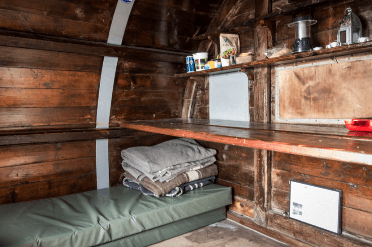 Il bivacco è un vero gioiellino: foderato di lamiera all’esterno e di legno all’interno, è pulito ed è dotato di 4 posti letto.