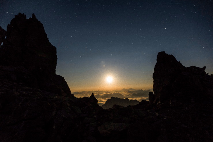 Ci godiamo il tramonto, la luce ci avvolge di calde tonalità. La fatica è dimenticata, resta il silenzio di quel bivacco a 3200 m e le nostre emozioni.
