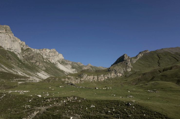 Si continua lungo l’ampia carrareccia sterrata che prosegue a mezza costa nell’ampio vallone pascolivo. Si supera il rio su un ponte in pietra e, con un lunghissimo tornante sui ripidi pendii erbosi della destra idrografica del vallone, si guadagna il soprastante ripiano erboso dove sorgono le baite ristrutturate delle Grange Morletto.