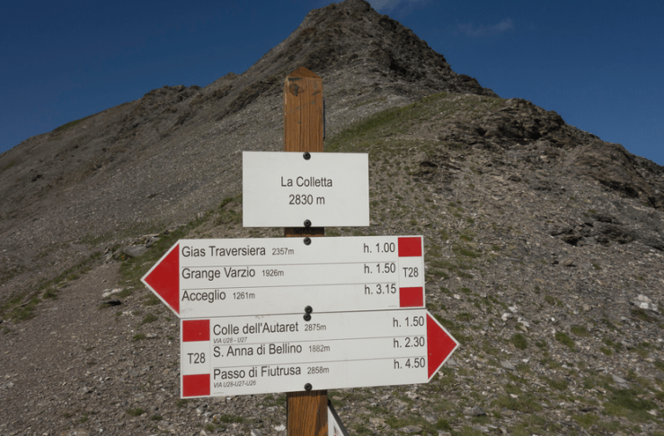 Si prosegue lungo la carrareccia, fino a raggiungere grandi dossi erbosi alla testata del vallone, si lascia a sinistra lo stacco di una mulattiera che raggiunge direttamente il valico della Colletta (2830 m).
