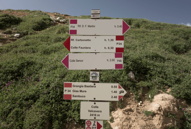Raggiungo in auto il Colle di Valcavera (2416 m) e parcheggio vicino al cartello di partenza.