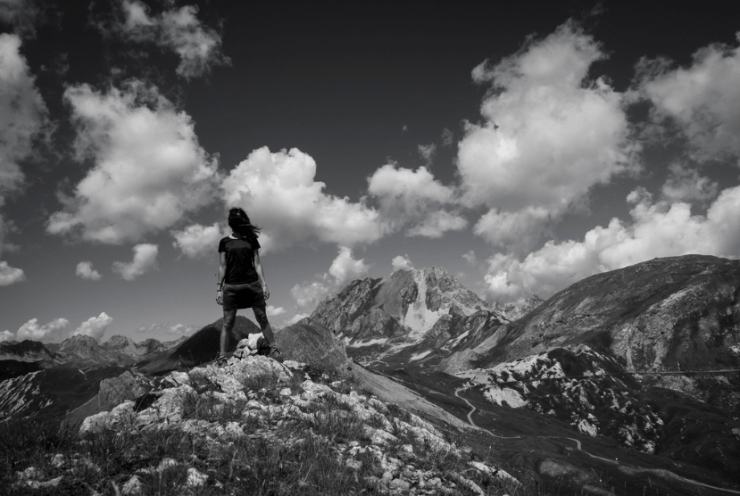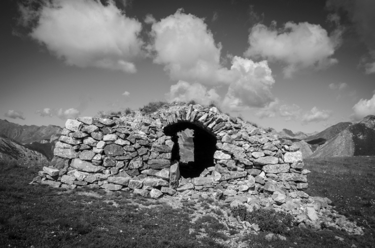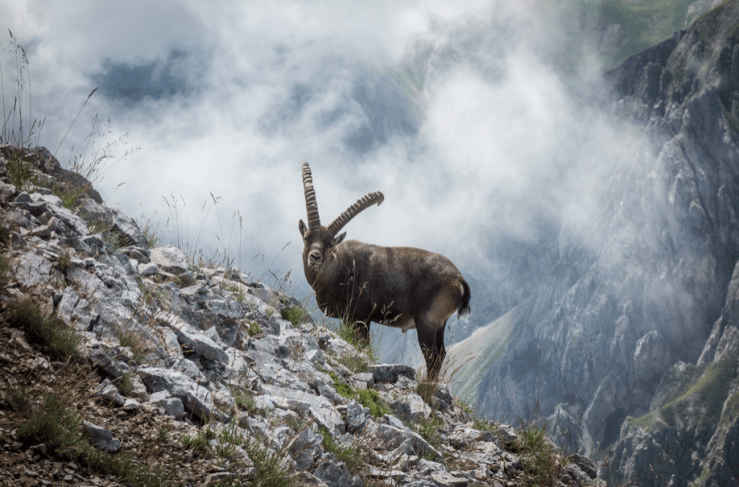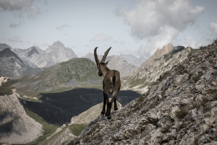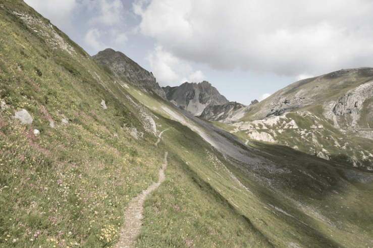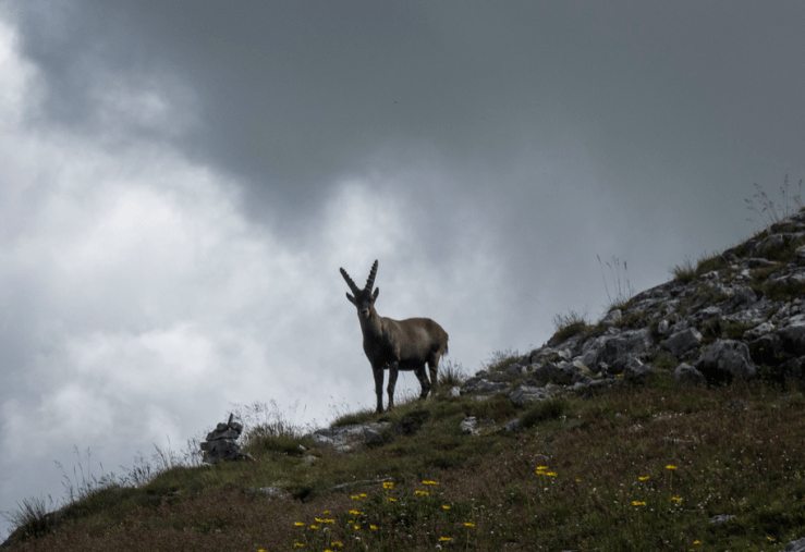 Superata la truna in pietra presente sul colletto , svolto a destra e percorro una pietraia. Il monte Omo è già visibile e per il momento è il luogo di riposo di alcuni stambecchi.