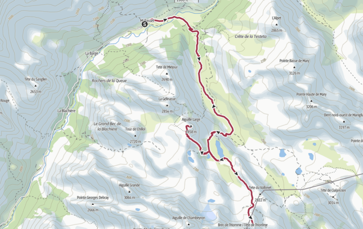 Nella parte mediana del Vallon de Mary, sorge questa “guglia dalla base larga”, L’ Aiguille Large, che si affaccia su due bellissimi laghi. La vetta permette di avere un’ampia visione sul glaciale versante settentrionale dell’ Aiguille de Chambeyron. Abbiamo tentato un’ascensione alla Tete de l’Homme ma senza giungere in cima.