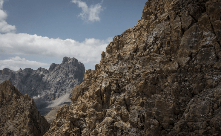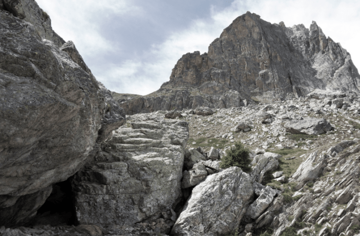 Arriviamo poi alla base della Tete de l’Homme e procediamo verso destra su facili roccette.