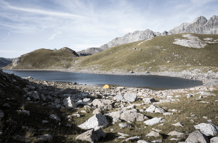 Il bivacco non è dei più confortevoli ma noi abbiamo una tenda e ci posizioniamo vicino al lago.