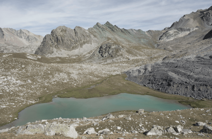 Il panorama diventa molto suggestivo: ci troviamo al cospetto del Glacier de Marinet. I ghiacciai del Marinet, si sono separati nella seconda metà del XX secolo. Si tratta dei ghiacciai più meridionali delle Alpi francesi. Inoltre siamo al cospetto del primo bellissimo lago.