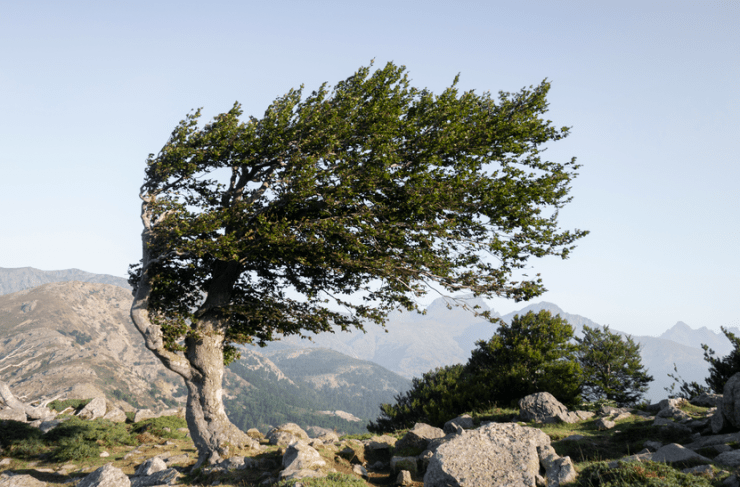 Si prosegue di fronte al rifugio, in leggera discesa raggiungendo il sentiero Ronde (1332 m). Si segue quest’ultimo a destra (attenzione seguire bene le indicazioni) fino ad arrivare a Bocca San Petru, luogo affasciante dai caratteristici alberi piegati dal vento.