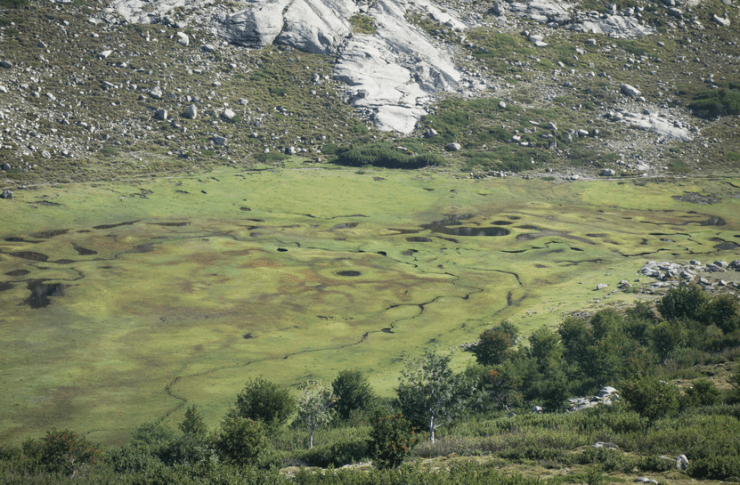 Dalla bergeries de Vaccaghja, scendere verso il Piano di Camputile e, dopo una lieve risalita, raggiungere lo spartiacque di Bocca d’Acqua Ciarnente (1568 m).