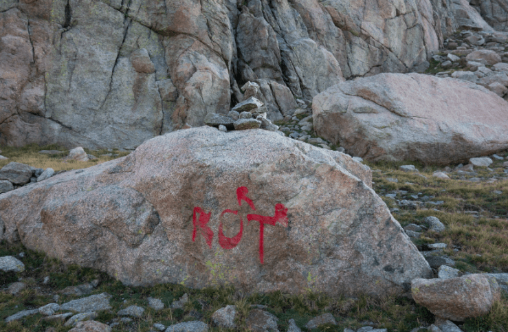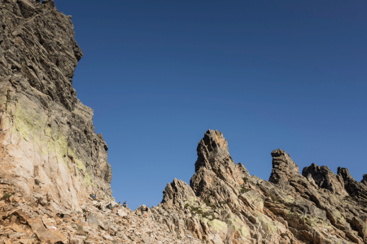 Intravedo tra le rocce Matthieu, un amico che ho già incontrato diverse volte sul mio cammino, in pochi facciamo deviazioni e cime, lui è l’unico ad averle fatte quasi tutte le cime possibili.