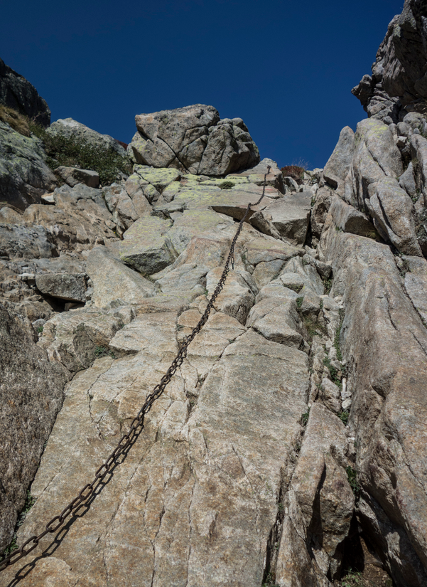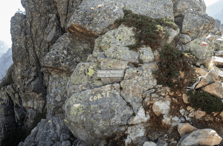 Da Bocca alle Porte, il terreno diventa particolarmente roccioso. Si scende su una cresta per raggiungere la Brèche de Capitellu situata a sud del lago Capitellu e a est di Punta alle Porte (2000m).