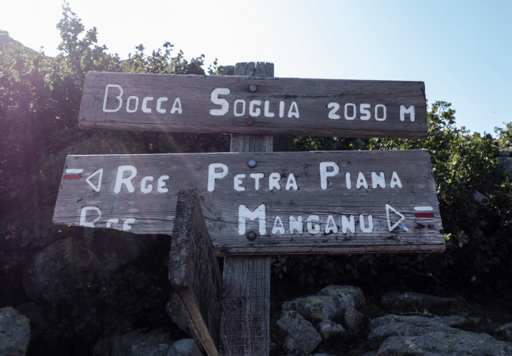 Da Bocca Muzzella, l’itinerario continua verso sinistra (sud-est) attraversando le punte sud della Maniccia, poco a nord di Bocca Manganellu.
