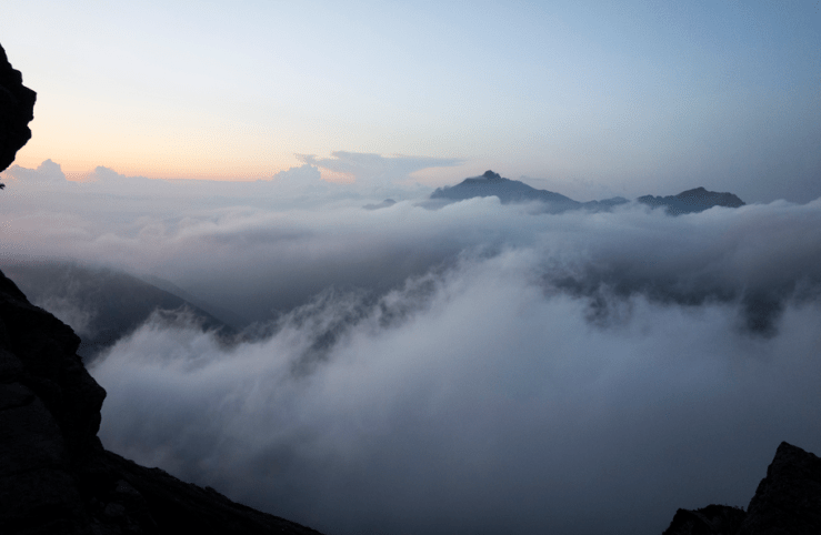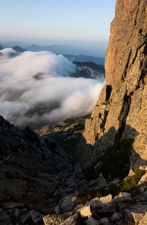 Dall’altra parte ci aspetta il monte d ‘Oro, prossima cima per entrambi ma ognuno ci arriverà in tempi diversi. Il cielo si ricopre e si annuvola, scendiamo verso il rifugio quando ormai tutto è ricoperto. Io decido di riposarmi e di rimanere un’altra notte, il mio amico Mathieu riparte entusiasta verso il prossimo rifugio e non lo rivedrò più.