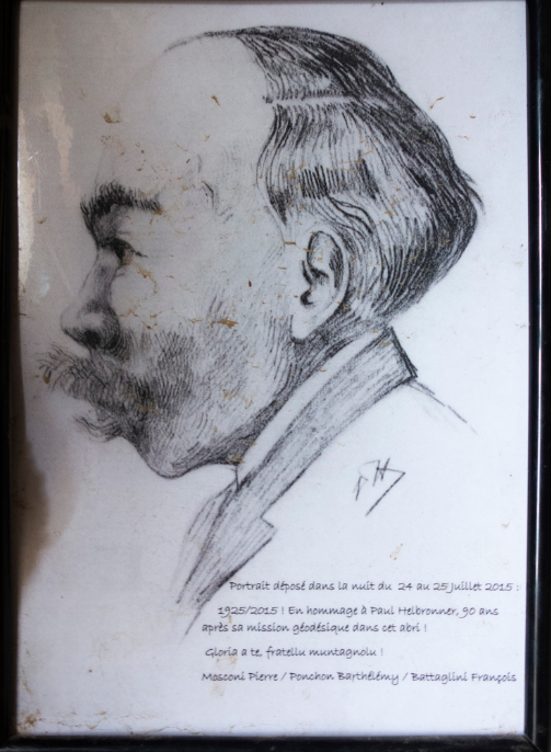 All’interno del bivacco trovo la foto di Paul Helbronner (Compiègne, 24 aprile 1871 – Parigi, 18 ottobre 1938) è stato un alpinista, geodeta e ingegnere francese, famoso per aver pubblicato per primo tutta la descrizione geodedica delle Alpi francesi e delle montagne della Corsica.