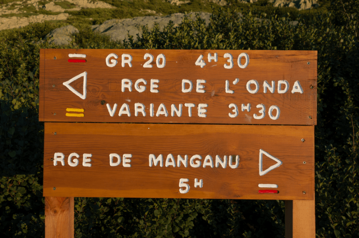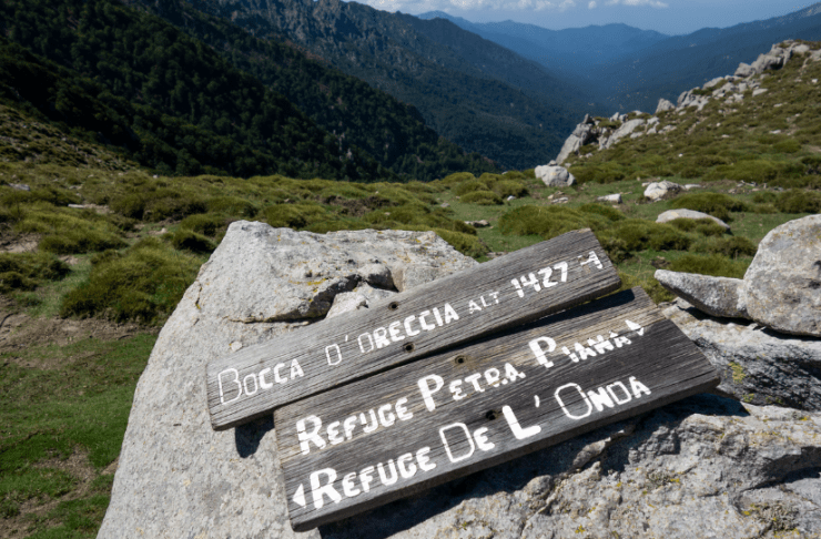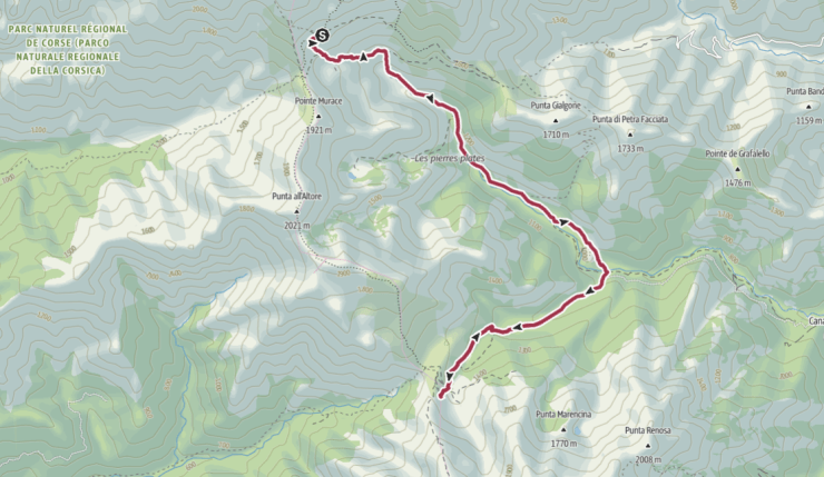 Da Bocca Manganellu (1800 m) si procede verso Punta Murace (1921 m). Il sentiero prosegue sulla cresta fino a Punta di i Pinzi Curbini (2021 m). Poi si scende verso Bocca a Meta (1890 m). A partire da questo colle, il sentiero prosegue sul versante nord-est, attraversa un ripido passaggio e in seguito passa sopra il Capo a Meta, per poi scendere gradualmente verso Bocca d’Orecchia (1427 m).