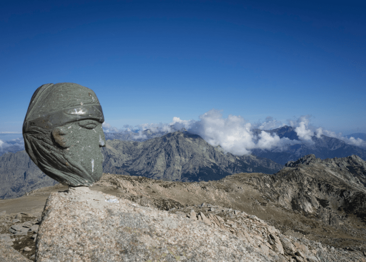 La vetta del monte Rinosu (2352 m) è costituita da un ammasso di grossi blocchi di granito su cui svetta la croce, affiancata da un volto scolpito nella pietra.