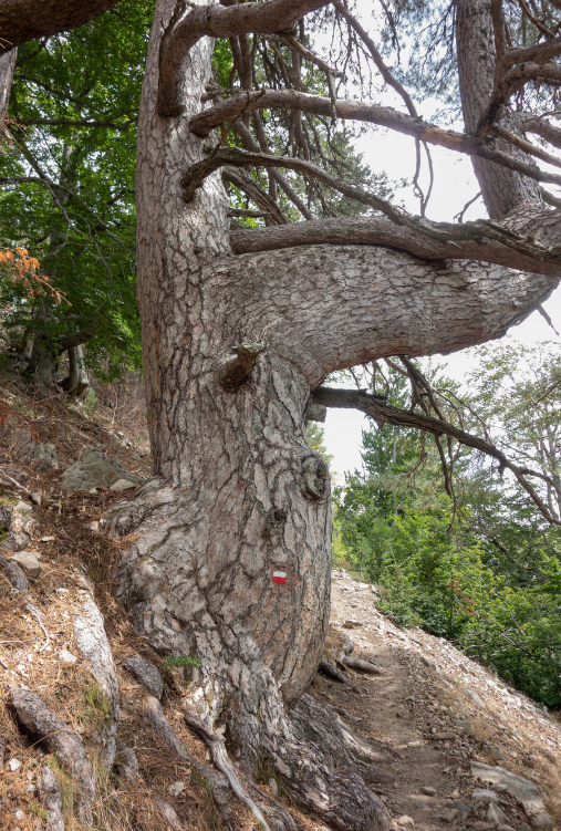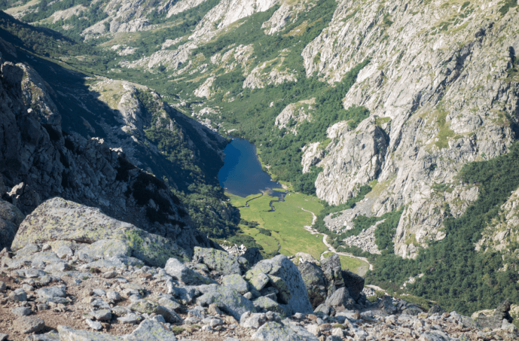 Da Bocca Verde il GR20 s’innalza su un antico sentiero verso sud-est, attraversa un bosco di abeti, fino a giungere a Bocca d’Oru (1840 m).