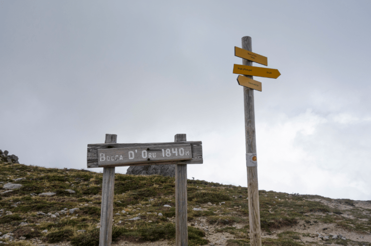 Da Bocca d’oro, si procede verso destra per arrivare sull’altopiano di Foci di Prati e poi si continua in discesa fino al rifugio Prati (1820 m).