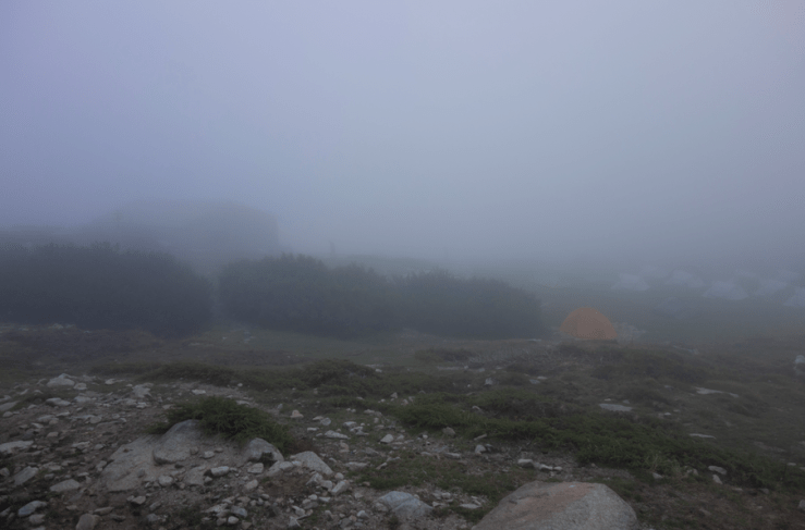 Il tempo è pessimo, il vento fortissimo, fatico a mettere la tenda. Di notte userò la coperta di sopravvivenza dentro il sacco a pelo per proteggermi dal freddo.