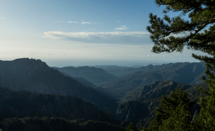Da Foce Finosa c’è uno splendido panorama sulle Aiguilles di Bavella, il golfo di Porto Vecchio, la Sardegna e verso nord su San Petronu.