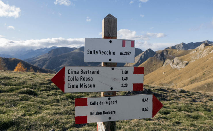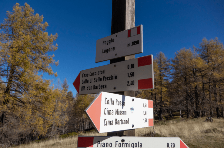 Il percorso inizia da Upega, passata la chiesetta di Madonna della Neve, la strada prosegue in salita fino ad una palina che indica la via per il Poggio Lagone, Cima Missun e Monte Bertrand.