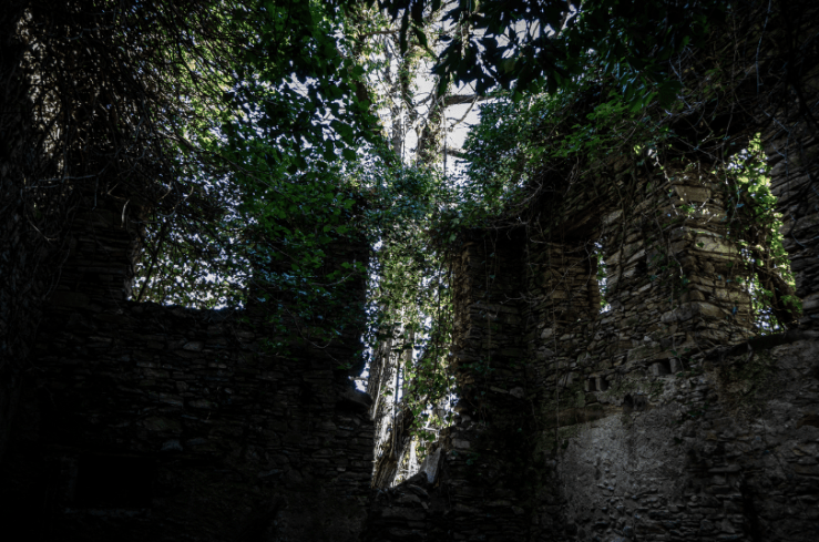 Troviamo subito dei ruderi di antiche abitazioni ormai “divorati” dalla vegetazione. Eppure, questi luoghi abbandonati, hanno un certo fascino, fanno pensare a storie, vicissitudini e al tempo che scorre inesorabilmente.