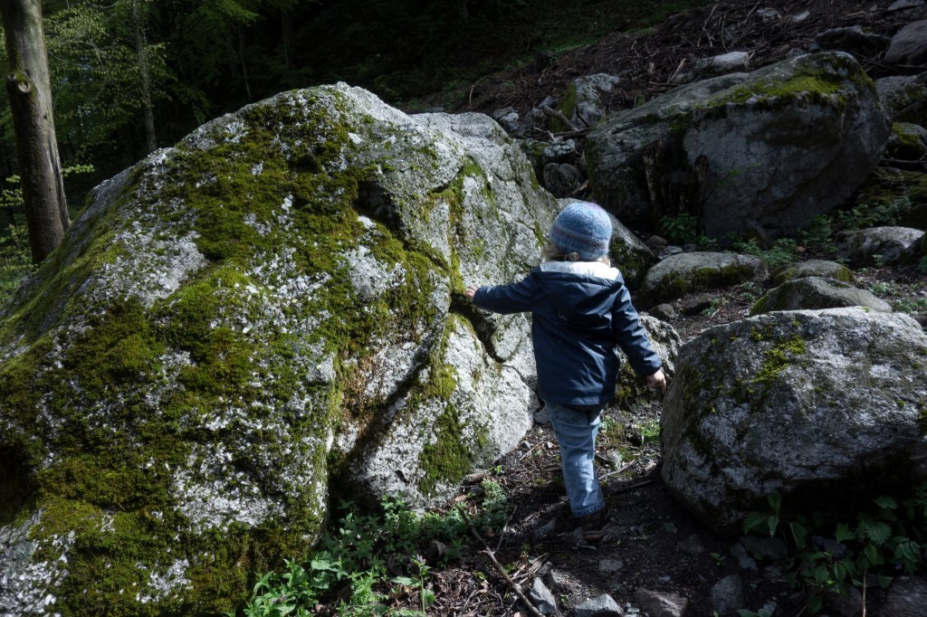 Giacomo esplora il bosco con tutti i sensi. Il profumo è intenso, è sempre un piacere venire qui.
