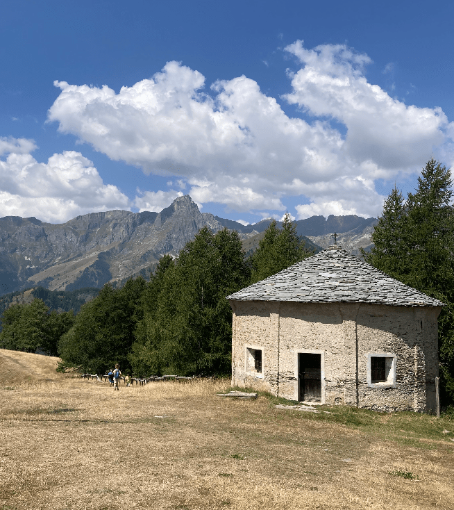 Lasciamo l’auto in un piccolo parcheggio a lato della strada e nei pressi del Rifugio la Sousto dal Col, poco prima dell’accesso al Colle di Sampeyre.